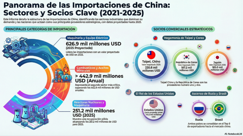 El comportamiento confirma que la demanda tecnológica mantiene dinamismo relativo. Componentes electrónicos y bienes de capital estratégicos sostienen parte de las importaciones de China desde el mundo, en línea con la modernización industrial y la transición hacia manufactura de mayor valor agregado.