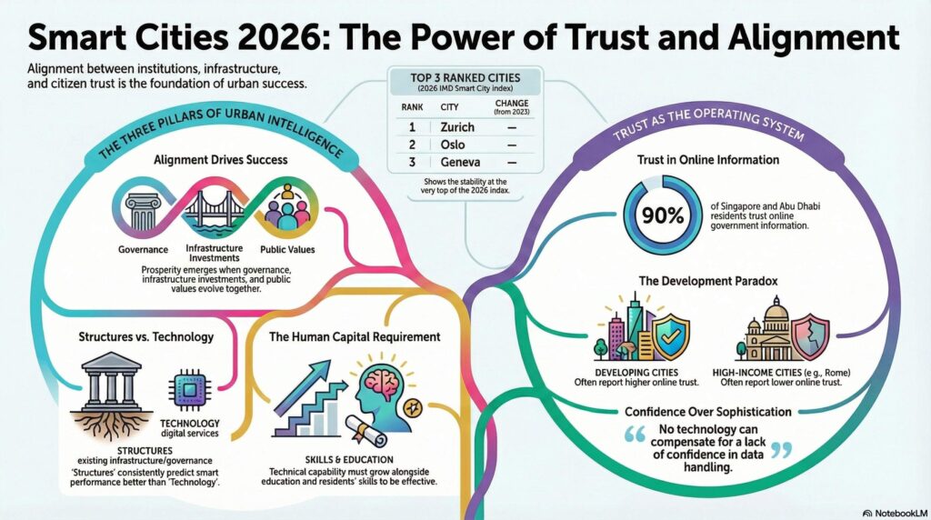Zurich maintains its undisputed leadership by once again topping the global ranking of smart cities. Its success lies in an exceptional balance between economic strength, applied technology, and sustainability. Thus, it guarantees a superior quality of life and unwavering public trust in its institutions.